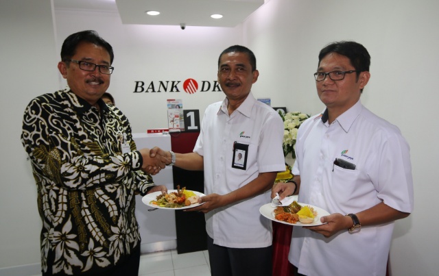 Direktur Bisnis Bank DKI, Antonius Widodo (paling kiri) tengah berbincang dengan Manager Area Selatan PD.Pasar Jaya, Asrul Rizal (dua dari kanan) dan Kepala PD Pasar Jaya Blok M Square, Istiawan Cahyo Adi (paling kanan) di Jakarta 25 Juli 2017.Sampai dengan Juli 2017 , Bank DKI telah mempunyai kantor layanan di pasar kelolaan PD Pasar Jaya sebanyak 24 unit. Pembukaan kantor layanan di sejumlah pasar merupakan upaya Bank DKI untuk meningkatkan kredit pada segmen UMKM dengan menjangkau lebih banyak pelaku dan pedagang UMKM di Jakarta sekaligus sebagai bentuk peningkatan sinergi BUMD
