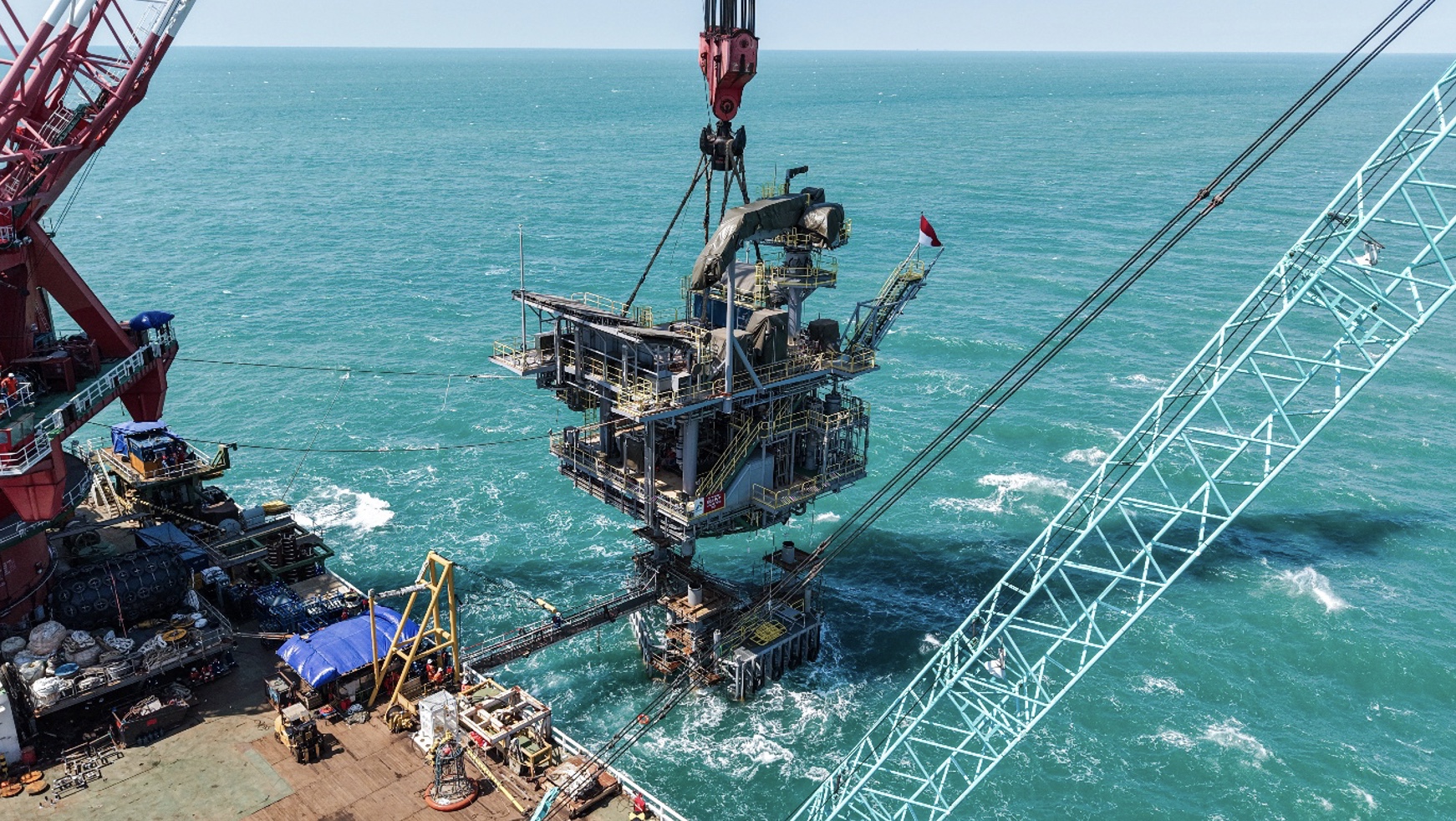 Proses instalasi jacket & topside Anjungan OOA yang telah berhasil diselesaikan dengan selamat sejak akhir Juni hingga awal Juli 2025