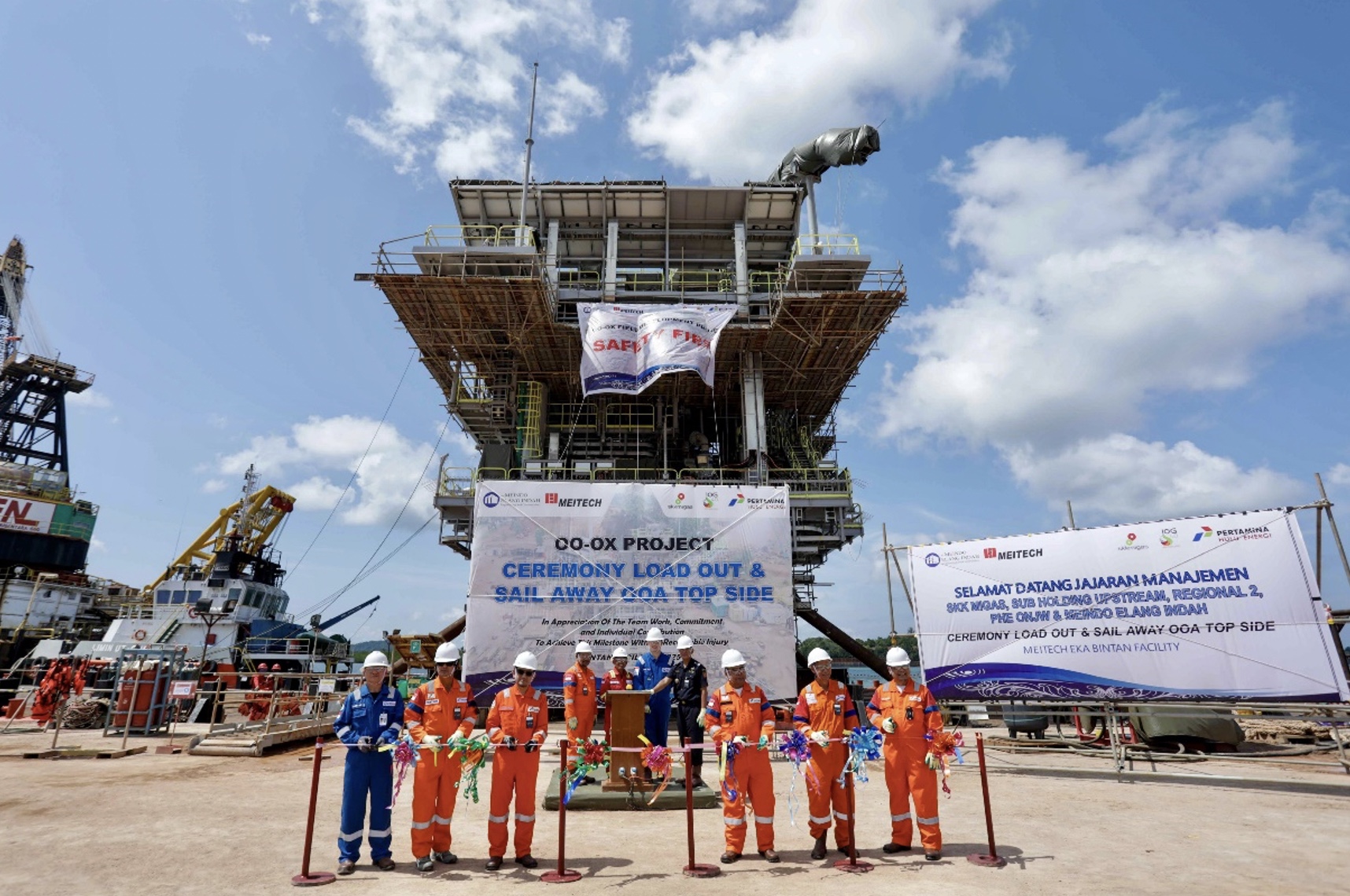 BUMN bidang eksplorasi minyak dan gas ini mengirim topside Anjungan OOA, berbobot 530 metrik ton, dari lokasi fabrikasi Proyek Pengembangan Lapangan OO-OX milik PT Meitech Eka Bintan—anak perusahaan PT Meindo Elang Indah—di Pulau Bintan, Kepulauan Riau, menuju pantai utara Jawa Barat melalui jalur laut, Selasa, 24 Juni 2025.