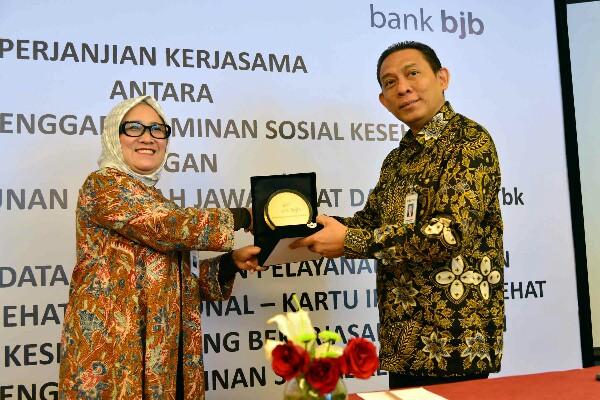 Direktur Komersial PT Bank BJB, Tbk Suartini dan Direktur Keuangan dan Investasi BPJS Kesehatan Kemal Imam Santoso saat penandatanganan kerja sama dua perusahaan di Jakarta, Rabu (22/11/2017). Kerja sama ini dalam rangka pemberian konfirmasi fasilitas kesehatan oleh BPJS Kesehatan kepada Bank BJB dalam rangka memperlancar pembiayaan pelayanan kesehatan perserta BPJS Kesehatan. Selain itu melakukan pembiayaan kepada fasilitas kesehatan melalui produk Open Account Financing (OAF) Bank BJB. (*)