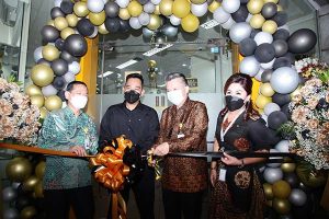Sales Distribution Division Head PT Bank KB Bukopin Tbk. Iman Hurustyadi (kiri) dan Wakil Direktur Utama Robby Mondong (kedua kiri) berbincang dengan nasabah prioritas di sela-sela acara pengumuman kerja sama di Jakarta, Rabu, 13 Juli 2022. PT Bank KB Bukopin Tbk. menjalin kerja sama dengan PT Sunindo Kookmin Best Finance dalam pembiayaan otomotif melalui program Autoloan yang membuka peluang untuk meningkatkan penjualan mobil Hyundai dengan skema yang lebih menarik, biaya kredit kompetitif dan transparan, serta proses kredit yang cepat. Bersamaan dengan itu, Bank KB Bukopin juga membuka kantor cabang baru di Menara Skyline, Thamrin.