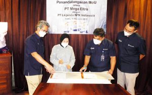 Direktur Utama PT Mega Eltra Hilman Taufik (kedua kanan), Direktur PT Lagenda NPK Indonesia Fadilawaty (kedua kiri), Direktur PT Mega Eltra Indrajaya (kiri) dan Direktur Dundi Insan melakukan penandatanganan kerja sama di Jakarta, Kamis,18 November 2021. Holding PT Pupuk Indonesia (Persero) ini berkomitmen melakukan kerjasama dengan PT Lagenda NPK Indonesia untuk menyediakan kebutuhan pupuk majemuk dalam negeri dengan merek dagang “Bunga Tulip†yang diberi nama NPK Melagenda sekaligus menjadi sebuah sinergi yang baik dan berkelanjutan bagi industri pupuk di Indonesia.