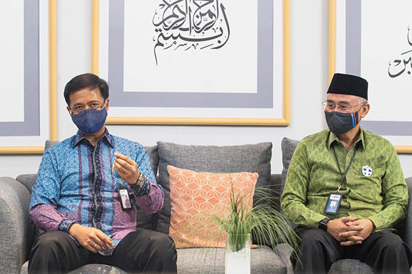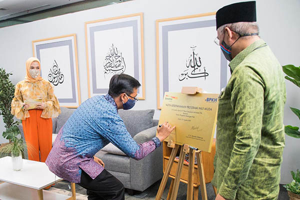 Direktur Danamon Syariah Herry Hykmanto (kiri) bersama Anggota Badan Pelaksana BPKH, H.A Iskandar Zulkarnain saat acara penandatanganan Nota Kesepahaman program “Mari Tunaikan Haji Selagi Muda” (MINA) di Jakarta, Rabu 26 Agustus 2020. PT Bank Danamon Indonesia Tbk (“Bank Danamon”) melalui Unit Usaha Syaria (UUS) Danamon Syariah hari ini menandatangani Nota Kesepahaman dengan Badan Pengelola Keuangan Haji (BPKH) untuk mendukung program “Mari Tunaikan Haji Selagi Muda” (MINA) atau yang biasa disebut dengan “Gerakan Ayo Haji Muda” dimana kalangan generasi muda dihimbau untuk melaksanakan ibadah haji saat usia muda. Dukungan Danamon Syariah meliputi kemudahan dalam proses pembukaan rekening dan pembayaran haji, perencanaan keuangan untuk persiapan haji, serta mendukung program investasi BPKH dalam mendukung penyediaan dana haji bagi calon jemaah haji, selain kegiatan sosialisasi bersama terkait manfaat ibadah haji pada usia muda.