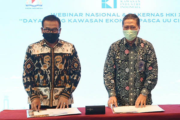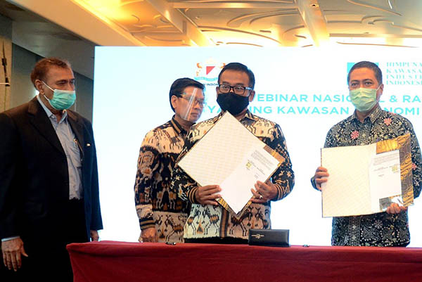 Direktur Consumer and Commercial Banking PT Bank Tabungan Negara (Persero) Tbk. Hirwandi Gafar (kanan) bersama Dewan Pembina Himpunan Kawasan Industri Indonesia (HKI) Halim Shahab, Ketua Umum HKI Sanny Iskandar dan Sekjen HKI Priyo Budianto berbincang di sela penandatanganan Naskah Memorandum of Understanding (MoU), di Jakarta, Kamis 26 November 2020. Bank BTN menjalin kemitraan dengan HKI terkait Sinergi Pemanfaatan Jasa Layanan Perbankan. Melalui kerja sama tersebut, HKI dapat memaksimalkan pemanfaatan jasa dan layanan perbankan di Bank BTN untuk mendukung akselerasi pengembangan kawasan industri.