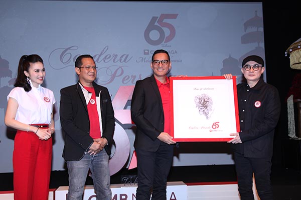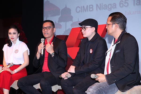 Head of Marketing, Brand, and Communications CIMB Niaga Toni Darusman (kedua kiri) tengah berbincang dengan Creative Director untuk rangkaian perayaan 65 Tahun CIMB Niaga Oleg Sanchabakhtiar (kanan), Brand Ambassador CIMB Niaga Sandra Dewi (kedua kanan), dan Desainer Aksesoris Kenamaan Tanah Air Rinaldy A. Yunardi (kiri) saat konferensi pers kick off CIMB Niaga 65 Tahun Melayani Indonesia di Jakarta, Selasa 4 Februari 2020. CIMB Niaga akan merayakan ulang tahun yang ke-65 pada 26 September 2020. Mengusung tema ’65 Tahun Melayani Indonesia’, CIMB Niaga akan mempersembahkan beragam kegiatan spesial sepanjang tahun untuk mengapresiasi seluruh stakeholders, diantaranya pameran perbankan ritel XTRA XPO, Konser #KejarMimpi untuk Indonesia, Gala Reception, serta Family Day. CIMB Niaga juga akan melaksanakan sejumlah program CSR dan gerakan sosial #KejarMimpi untuk memberikan kontribusi berkelanjutan kepada masyarakat di berbagai wilayah Tanah Air.