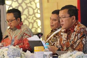 Direktur Utama Bank BTN Haru Koesmahargyo (tengah) berbincang bersama Wakil Direktur Utama Bank BTN Nixon LP Napitupulu, Direktur Finance Bank BTN Nofry Rony Poetra, Direktur IT & Digital Bank BTN Andi Nirwoto dan Direktur Risk Management Bank BTN Setiyo Wibowo saat pers conference Kinerja Keuangan Bank BTN semester I/2022 di Jakarta, Kamis, 15 September 2022. Sepanjang periode Januari hingga Juni 2022 Bank BTN berhasil membukukan kinerja gemilang dengan meraih laba bersih Rp1,47 triliun melonjak 60%, penyaluran kredit naik 7,61% menjadi Rp286,152 triliun dan DPK tumbuh 2,99% menjadi Rp307,309 triliun.