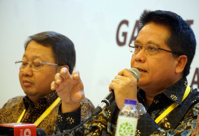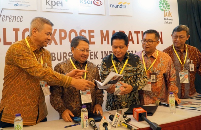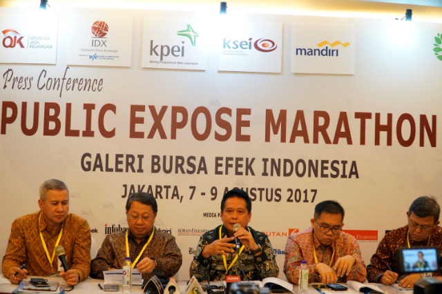 (Kiri-kanan ) Corporate Secretary Bank Mandiri Rohan Hafas, Wadirut Bank Mandiri Sulaiman A Arianto, Direktur Distribusi Hery Gunardi, Direktur Digital Banking&Technology Rico U. Frans dan Chief Economist Bank Mandiri Anton H Gunawan tengah berbincang saat menyampaikan paparan kinerja triwulan II/2017 di Bursa Efek Indonesia, Jakarta, Selasa 8 Agustus 2017. Bank Mandiri membukukan pertumbuhan kredit secara tahunan yang mencapai 11,6% pada akhir Juni 2017 menjadi Rp682,0 triliun. Capaian ini mendorong kenaikan laba bersih perseroan 33,7% (yoy) menjadi Rp 9,5 triliun