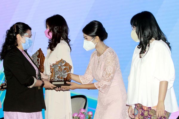 Deputi Kementerian BUMN bidang Keuangan dan Management Risiko Nawal Nelly (kiri) menyerahkan plakat Srikandi BUMN kepada Direktur Remedial and Wholesale Risk PT Bank Tabungan Negara (Persero) Tbkm Elisabeth Novie Riswanti di sela acara peluncuran website Srikandi BUMN dalam perayaan Hari Ibu di Jakarta, Selasa, 22 Desember 2020. Menyambut Hari Ibu, Kementerian BUMN memperkenalkan Komunitas Srikandi BUMN yang akan menjadi wadah seluruh karyawan perempuan di perusahaan BUMN untuk dapat saling mendukung, menginspirasi dan membangun personal yang profesional. Keberadaan komunitas ini diharapkan menjadi bentuk apresiasi terhadap kontribusi kaum perempuan yang telah bekerja dan berkarya di perusahaan BUMN melalui peningkatan porsi kaum wanita di jajaran pengurus BUMN.
