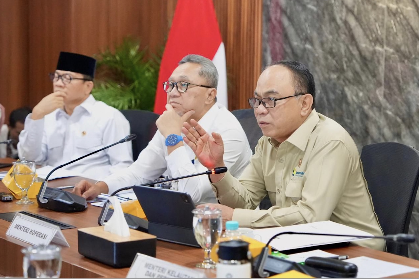 Rakor tersebut membahas tindak lanjut peluncuran kelembagaan 80.000 Kopdes/Kel Merah Putih serta implementasi sejumlah peraturan pendukung. Salah satunya adalah Peraturan Menteri Keuangan Nomor 49/2025 tentang tata cara pinjaman dalam rangka Kopdes/Kel Merah Putih.