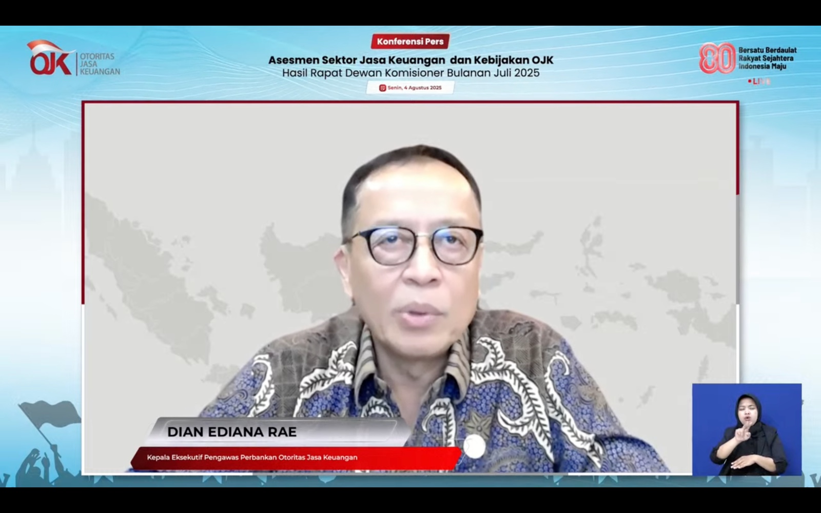 “Kinerja intermediasi perbankan dalam posisi stabil dengan profil risiko yang tetap terjaga. Pada Juni 2025 pertumbuhan kredit tumbuh sebesar 7,77 persen yoy,” kata Dian Ediana Rae, Kepala Eksekutif Pengawas Perbankan OJK, dalam Konferensi Pers RDK, Senin, 4 Agustus 2025.