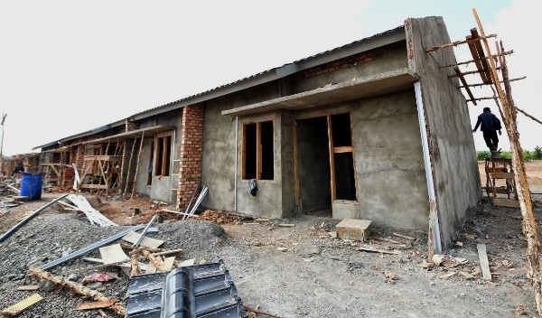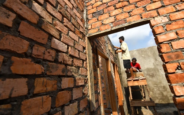 Pembangunan perumahan di sejumlah daerah masih terus berjalan terlihat seorang pekerja sedang memantau proyek rumah di Palembang, beberapa pekan lalu. PT Bank Tabungan Negara (Persero) Tbk terus memberikan komitmennya untuk mendukung pembiayaan pembangunan perumahan yang dibangun dalam rangka program sejuta rumah tahun 2019. Sampai dengan Agustus 2019 tercatat telah disalurkan kredit konstruksi pembangunan perumahan sekitar Rp26,046 Triliun atau naik sekitar 11,64% dari posisi 2018 sebesar Rp25,422 Triliun. (*)