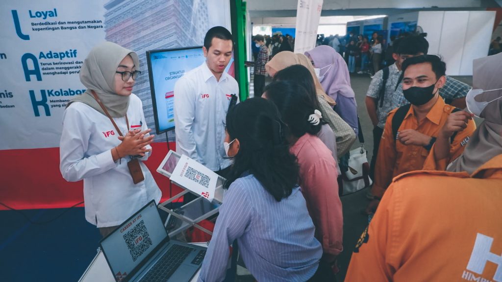Indonesia Financial Group (IFG) BUMN Holding Asuransi, Penjaminan dan Investasi melakukan sosialisasi terkait holding serta kesempatan berkarir di IFG kepada mahasiswa di Kampus Universitas Pertamina pada acara BUMN Goes To Campus yang diinisiasi oleh Kementerian BUMN. Foto: Doc IFG