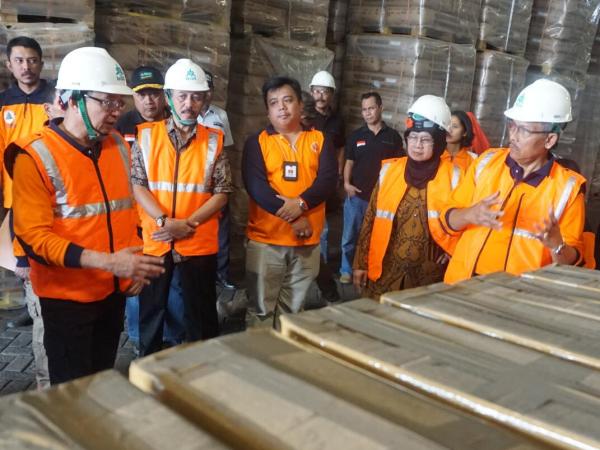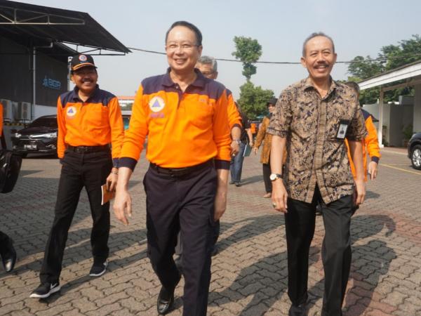Direktur Pemasaran PT Bhanda Ghara Reksa (Persero), M Taufik Hidayat (kanan) mendampingi Kepala Badan Nasional Penanggulangan Bencana (BNPB) Laksamana Muda TNI Willem Rampangilei (dua dari kanan) dalam kunjungan ke kawasan Gudang BGR Cabang DKI Jakarta, di Jakarta Jumat 4 Agustus 2017. Saat ini BGR menyewakan warehouse seluas 6500m2 dan open storage 900 m2 untuk kebutuhan penyimpanan sarana prasarana pendukung kegiatan BNPB seperti perahu karet, alat pemadam, dan juga kendaraan taktis lainnya. (*) Erman