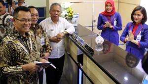 Direktur Utama PT Bank Tabungan Negara (Persero) Tbk,Maryono (kedua kiri) dan Sekretaris Jenderal Kementerian Pupera,Taufik Widjoyono (kedua kanan) menandatangani perjanjian kerjasama tentang Pemanfaatan layanan dan Jasa Perbankan disaksikan Menteri Pekerjaan Umum dan Perumahan Rakyat (Pupera),Basuki Hadimuljono (kiri) dan Deputi Bidang Usaha Jasa Keuangan, Jasa Survei dan Jasa Konsultasi BUMN,Gatot Trihargo (kanan) di Jakarta,Rabu 30 September 2015.Acara tersebut sekaligus meresmikan Kantor layanan BTN di Kementerian Pupera,yang banyak potensi bisnis bisa diimplementasikan.(Budi Urtadi)