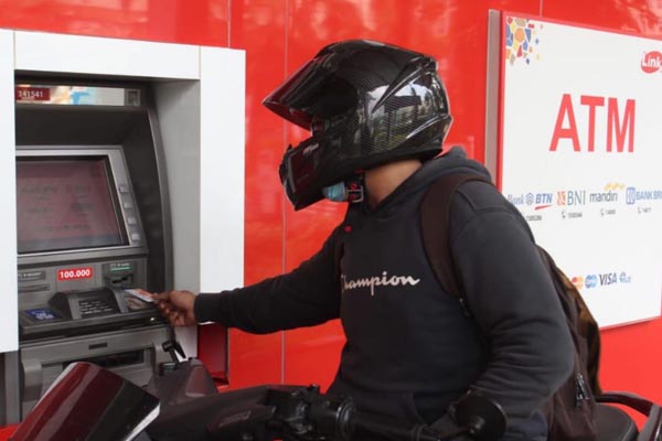 Seorang nasabah sedang melakukan transaksi di ATM Link. Demi mendekatkan layanan perbankan bagi para nasabahnya, Himpunan Bank-Bank Milik Negara (Himbara) yang terdiri atas Bank BRI, Bank BNI, Bank BTN, dan Bank Mandiri telah menyediakan sebanyak 45.000 mesin Anjungan Tunai Mandiri (ATM) Link yang tersebar hingga pelosok desa terpencil di seluruh Indonesia. Ke depannya, ATM Link diharapkan dapat meningkatkan layanan perbankan inklusif, peningkatan keamanan, dan kualitas layanan yang pada akhirnya diharapkan dapat menciptakan kenyamanan nasabah Himbara dalam bertransaksi.