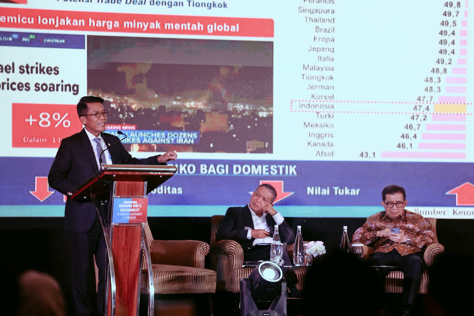 “Artinya, ketentuan perbankan yang mengharuskan CAR cuma 10 persen menyebabkan ada 20 persen dana menganggur di sana. Apa yang terjadi? dana perbankan itu ping-pong. Dilempar ke SBN, dilempar ke SRBI. Akhirnya bankers kita yang hebat-hebat itu menjadi bankers yang hebat dalam rangka mengelola treasury, bukan mengelola portofolio kredit,” ujarnya dalam acara Infobank-MRI Banking Service Excellence Awards 2025, di Shangri-La Hotel Jakarta, (24/6/2025).