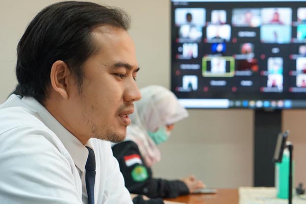 Head of Corporate communication Mandiri Syariah Nana Suryana (kiri) dan Head of Culture Dept Mandiri Syariah Farida Widyastuti (kanan) menyambut kunjungan virtual mahasiswa Universitas Muhammadiyah Prof hamka, di Jakarta, Selasa, 30 Juni 2020. Mandiri Syariah memiliki komitmen pengembangan dan peningkatan kualitas SDM melalui kegiatan inklusi dan literasi perbankan syariah kepada mahasiswa.