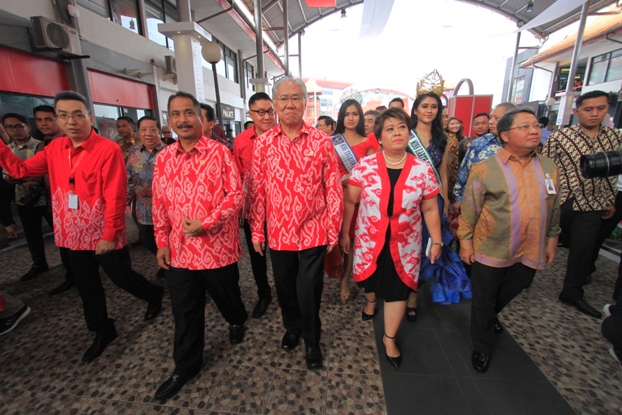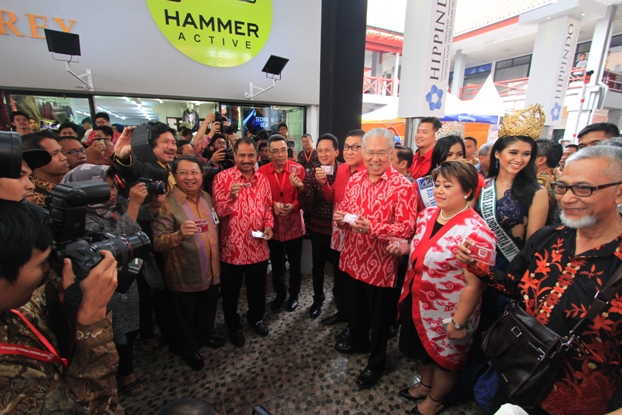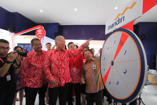 Pesta Diskon HBDI Dibuka – (kika) Menpar Arief Yahya, Mendag Enggartiasto Lukito, Ketua Umum Himpunan Penyewa Pusat Belanja Indonesia (Hippindo), Budihardjo Iduansjah, Wadirut Bank Mandiri Sulaiman A Arianto tengah mengunjungi booth Bank Mandiri saat pembukaan Hari Belanja Diskon Indonesia (HBDI) di area PRJ Kemayoran Jakarta, Selasa (15/8). Bank Mandiri menyiapkan channel elektronik dan berbagai program promo seperti diskon 72%, dan cicilan 0% dengan kartu debit dan kartu kredit Mandiri untuk memudahkan pengunjung bertransaksi di ajang yang berlangsung pada 15-27 Agustus tersebut. (*)