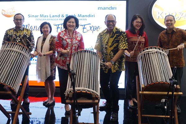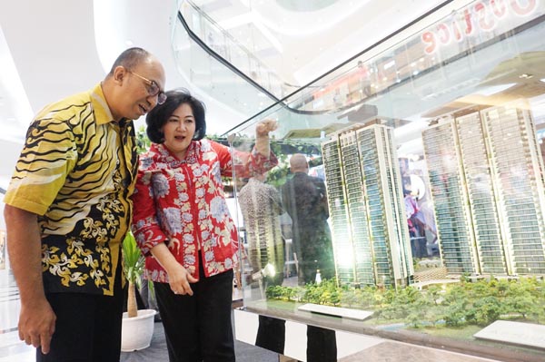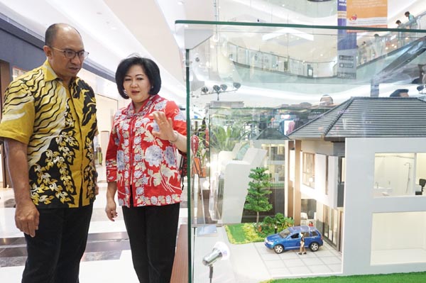 Consumer Loans Bank Mandiri Ignatius Susatyo Wijoyo (kiri) dan Direktur Sinarmas Land Lie Jani Harjanto, melihat maket apartemen dalam pameran properti Mandiri Fiesta Expo di Jakarta, Selasa 12 November 2019. Dalam pameran yang digelar pada 12-17 November 2019 itu, Mandiri menawarkan promo khusus untuk nasabah Mandiri Group dan nasabah Sinar Mas Land yaitu suku bunga KPR mulai dari 4,5 persen fixed satu tahun, diskon 20 persen premi asuransi dan gratis e-Money untuk nasabah yang mengajukan KPR.