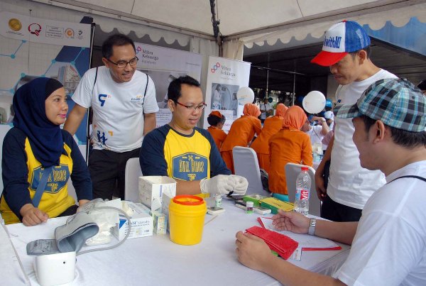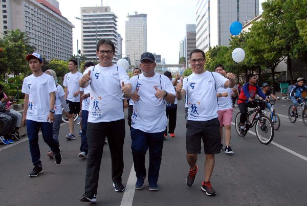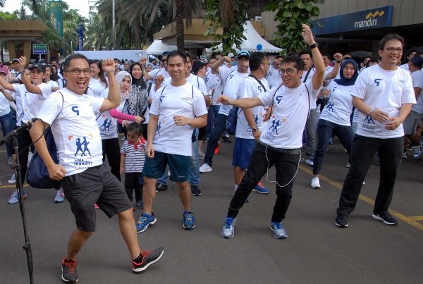Direktur Utama Mandiri Inhealth Iwan Pasila (kedua kiri) bersama Direksi Mandiri Inhealth melepas balon usai membuka funwalk dalam rangka perayaan HUT Mandiri Inhealth ke-9 yang bertajuk “Satu Semangat, Sehat Negeriku” di depan Wisma Mandiri, Minggu (15/10). Dalam acara yang juga berisi zumba dan cek kesehatan gratis itu Iwan mengatakan tak hanya berfokus kepada penanganan peserta di rumah sakit, namun juga dalam mempromosikan pola hidup sehat. Hingga September 2017, Mandiri Inhealth mencatatkan laba bersih Rp135M, tumbuh 7,9% secara year on year. (*)
