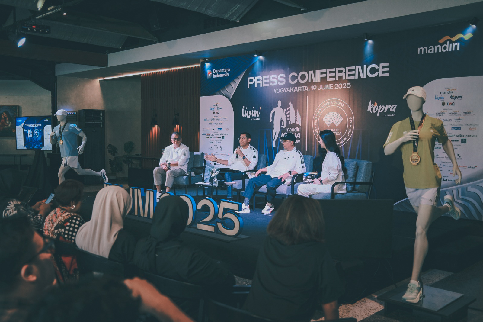 Bank Mandiri mengadakan konferensi pers terkait akan digelarnya Mandiri Jogja Marathon (MJM) 2025 pada 22 Juni mendatang di kawasan Candi Prambanan, Yogyakarta. Foto Bank Mandiri