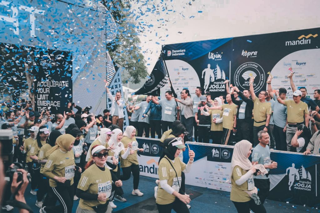 Mandiri Jogja Marathon 2025 bertema “Accelerate Your Limit, Embrace the Culture” diikuti 9200 peserta dari 17 negara menjadi salah satu event lari paling ditunggu karena mengombinasikan kompetisi, keindahan alam dan kekayaan budaya lokal. Pada event ini, duet pelari Kenya Paul Kibet dan Eunice N. Muciri menjadi yang tercepat di nomor marathon open male dan female, sedangkan Nofeldi Petingko dan Ina Lidya Utari Damayanti menjadi duet pelari nasional tercepat di kategori marathon closed male dan female. Foto Bank Mandiri