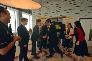 Direktur PT Bank Internasional Indonesia Tbk (BII) Ghazali Mohd. Razad (kedua kanan) dan Direktur Jenny Wiriyanto (kanan), berbincang dengan perwakilan 60 finalis Maybank Go Ahead. Challenge (MGAC) 2015 yang berasal dari 14 negara di kantor pusat BII, Jakarta, Kamis 20 Agustus 2015.Tahun keempat penyelenggaraan MGAC, yang merupakan ajang perekrutan bakat bisnis multi-disiplin.Selama tiga hari untuk mengikuti putaran Final Global, memperebutkan total hadiah USD 72.000,dan kesempatan untuk mengikuti program Global Maybank Apprentice (GMAP) yang bergengsi serta mengikuti program bimbingan (mentorship) internasional selama dua tahun di Maybank.(*)