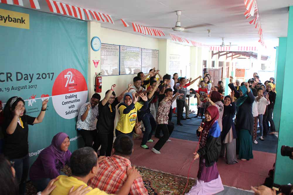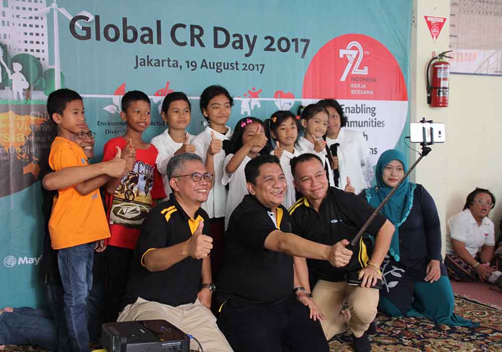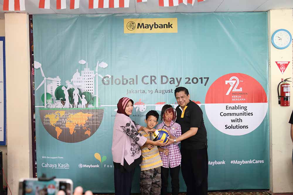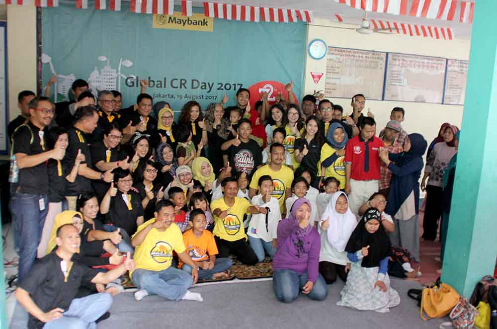 Direktur PT Bank Maybank Indonesia Tbk (Maybank Indonesia) Irvandi Ferizal berinteraksi dengan siswa-siswi SLB Amal Mulia, Cipulir, Jakarta,Sabtu 19 Agustus 2017.Dalam Global CR Day, yang mengangkat tema “Enabling Communities through Solutions” (Memberdayakan Masyakat dengan Memberikan Solusi). Pada Global CR Day di Indonesia, Maybank Indonesia berbagi kasih dan harapan dengan anak-anak penyandang disabilitas melalui tiga inisiatif yakni sharing, fun learning dan penyerahan donasi dalam bentuk perlengkapan olahraga kepada para penyandang disabilitas dan SLB. Inisiatif yang sama juga akan dilakukan di SLB yang berada dekat dengan 79 kantor cabang Maybank di seluruh Indonesia. Total 3.000 karyawan Maybank yang berpartisipasi secara aktif dalam Global CR Day tahun ini dengan total penerima manfaat sekitar 5000 siswa-siswi SLB di seluruh Indonesia.Inisiatif ini menjadi bagian dari Maybank Global CR Day yang melibatkan lebih dari 20.000 karyawan Maybank di seluruh dunia.(*)