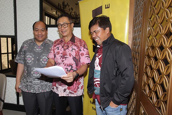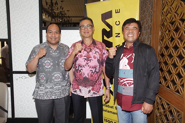 Direktur Utama Adira Finance Hafid Hadeli (tengah) didampingi Direktur Keuangan Adira Finance I Dewa Made Susila (kanan) dan Head of Corporate Secretary Adira Finance Perry B. Slangor (kiri) tengah berbincang disela paparan kinerja yang diadakan di Jakarta, Jumat 15 Februari 2019. Adira Finance membukukan penyaluran pembiayaan baru sebesar Rp38,2 triliun selama tahun 2018, atau tumbuh sebesar 17 persen dibanding 2017. Kedua segmen sepeda motor baru dan mobil baru, berkontribusi besar terhadap pertumbuhan secara keseluruhan.