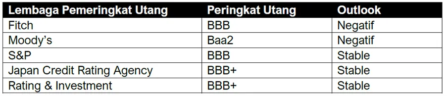Sebulan sebelumnya, Moody’s Ratings lebih dulu menurunkan outlook Indonesia menjadi negatif, dari sebelumnya stabil, meskipun tetap mempertahankan peringkat utang Indonesia di level Baa2, yakni peringkat investment grade dengan risiko menengah.