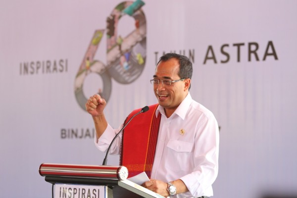 Menteri Perhubungan Republik Indonesia Budi Karya Sumadi memberi sambutan sekaligus meresmikan Kampung Berseri Astra Cengkeh Turi sebagai Kampung Ramah Anak – Tertib Lalu Lintas pada rangkaian acara HUT ke-60 Astra di Medan (24/9).