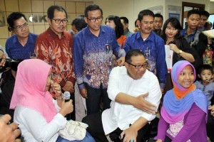 Menteri Koperasi dan UKM-Anak Agung Gede Ngurah Puspayoga didampingi Pinwil Jakarta 2 BRI-Agus Noorsanto,Wapinwil Bisnis-Anom Redi dan Pinca KC BRI Pasar Minggu-Nasrullah Iskandar,melihat dan berinterkasi kepada Nasabah KUR di Kantor Cabang BRI Pasar Minggu Jakarta,Selasa 8 September 2015.Bank BRI sendiri optimis penyaluran pinjaman di sektor usaha mikro bisa tumbuh di kisaran 17%-18% di tahun ini,dengan meningkatkan jangkauan jasa layanan perbankan di sektor usaha mikro hingga ke wilayah-wilayah terpencil.(Budi Urtadi)
