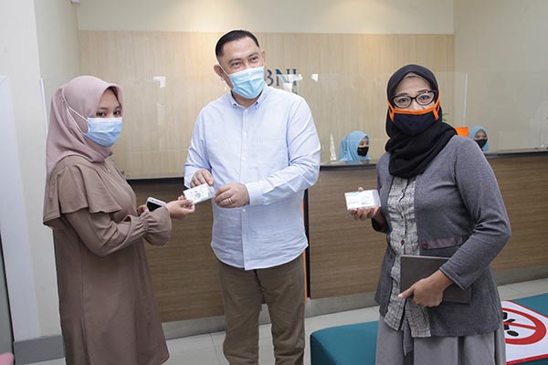 Direktur Utama BNI Syariah, Abdullah Firman Wibowo secara langsung menyapa dan melayani nasabah yang berkunjung ke BNI Syariah Kantor Cabang Bumi Serpong Damai, Jumat 4 September 2020. Pada kesempatan ini, Abdullah Firman Wibowo juga memberikan informasi mengenai standar protokol kesehatan yang telah diterapkan di layanan BNI Syariah sebagai wujud membangun customer engagement. Tiga kegiatan utama yang dilakukan BNI Syariah pada Hari Pelanggan Nasional tahun 2020 adalah Customer Engagement, We Care di cabang, dan We Care Video Call.