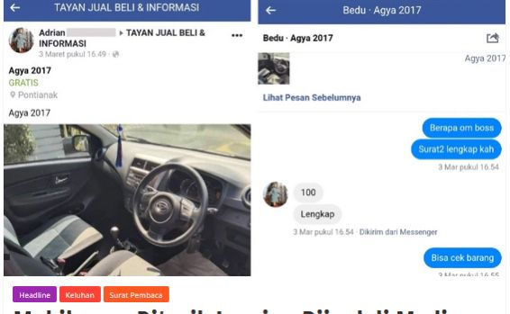 Namun yang terjadi kemudian, sekitar bulan Maret, tanpa pemberitahuan dari pihak leasing, saya melihat mobil saya diposting dijual di salah satu platform media sosial Facebook.