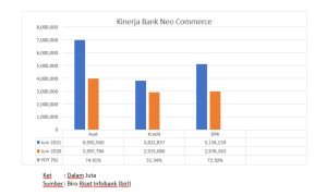 Sebagai informasi, kinerja Bank Neo Commerce mengalami pertumbuhan selama masa pandemi. Biro Riset Infobank (birI) mencatat, aset Bank Neo Commerce tumbuh 74,91% secara tahunan menjadi Rp7 triliun per Juni 2021. Sementara, di periode yang sama, kredit dan dana pihak ketiga (DPK)-nya masing-masing tumbuh 31,14% dan 72,50% menjadi Rp3,82 triliun dan Rp5,13 triliun. (*) Ayu Utami