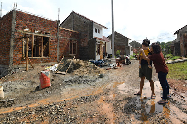 Sebuah keluarga kecil sedang meninjau rumah yang sedang dibangun memakai fasilitas Kredit Pemilikan Rumah (KPR) PT Bank Tabungan Negara (Persero) Tbk., di pinggiran Jakarta, Jumat (3/7). Di era New Normal, Bank BTN tetap memacu penyaluran kredit perumahan untuk membantu pemerintah dalam program Pemulihan Ekonomi Nasional. Adapun, per 31 Mei 2020, perseroan sukses merealisaskan KPR FLPP untuk membiayai 46.798 unit atau setara dengan Rp4,7 triliun. (*)