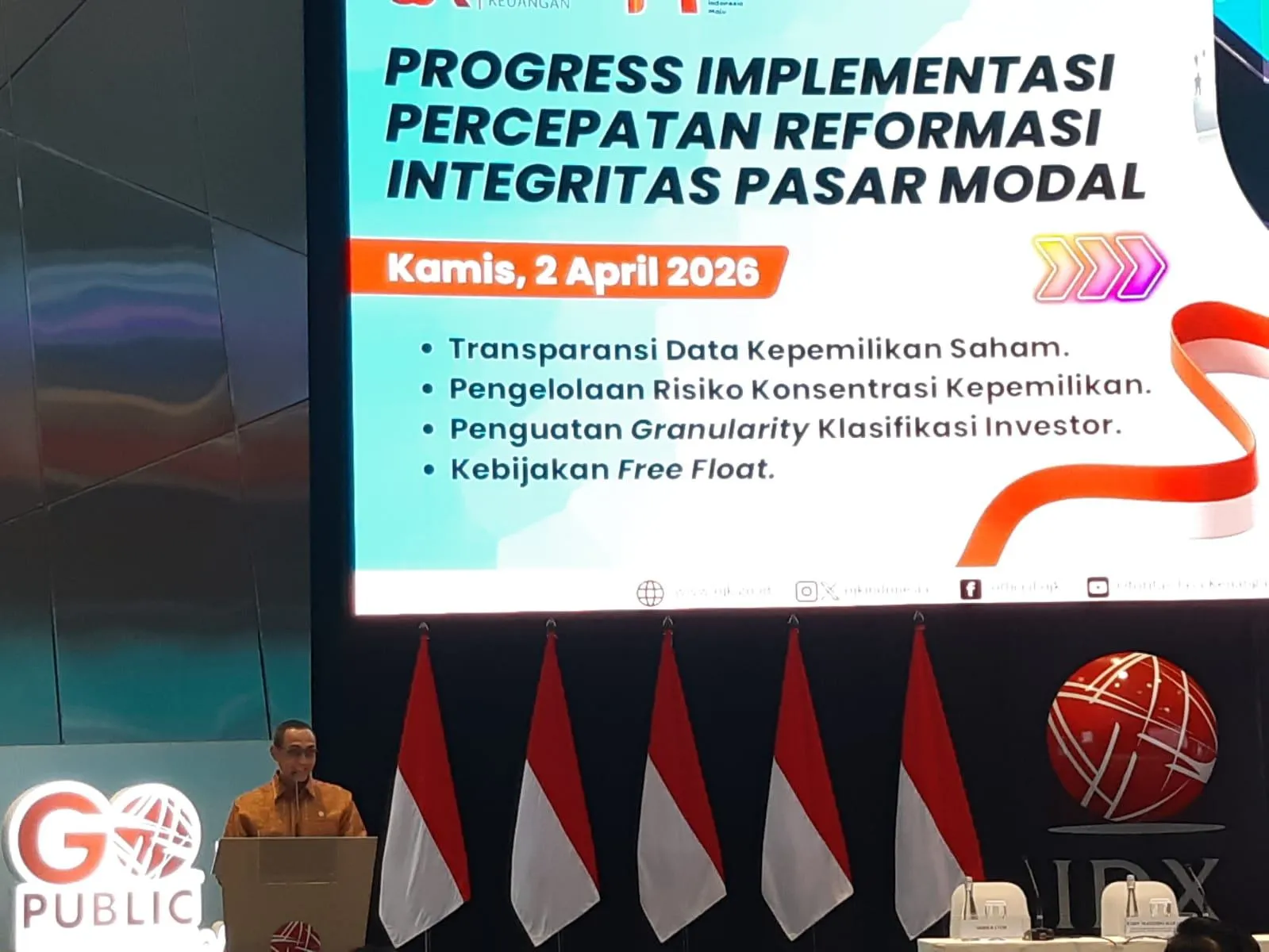 “Untuk mekanisme high shareholding concentration, hari ini rencana akan mulai juga dilakukan penyampaian publikasinya,” ujar Hasan Fawzi, Kepala Eksekutif Pengawas Pasar Modal, Keuangan Derivatif, dan Bursa Karbon OJK, dalam konferensi pers Sosialisasi Capaian Reformasi Transparansi Pasar Modal Indonesia di Gedung BEI Jakarta, Kamis, 2 April 2026.