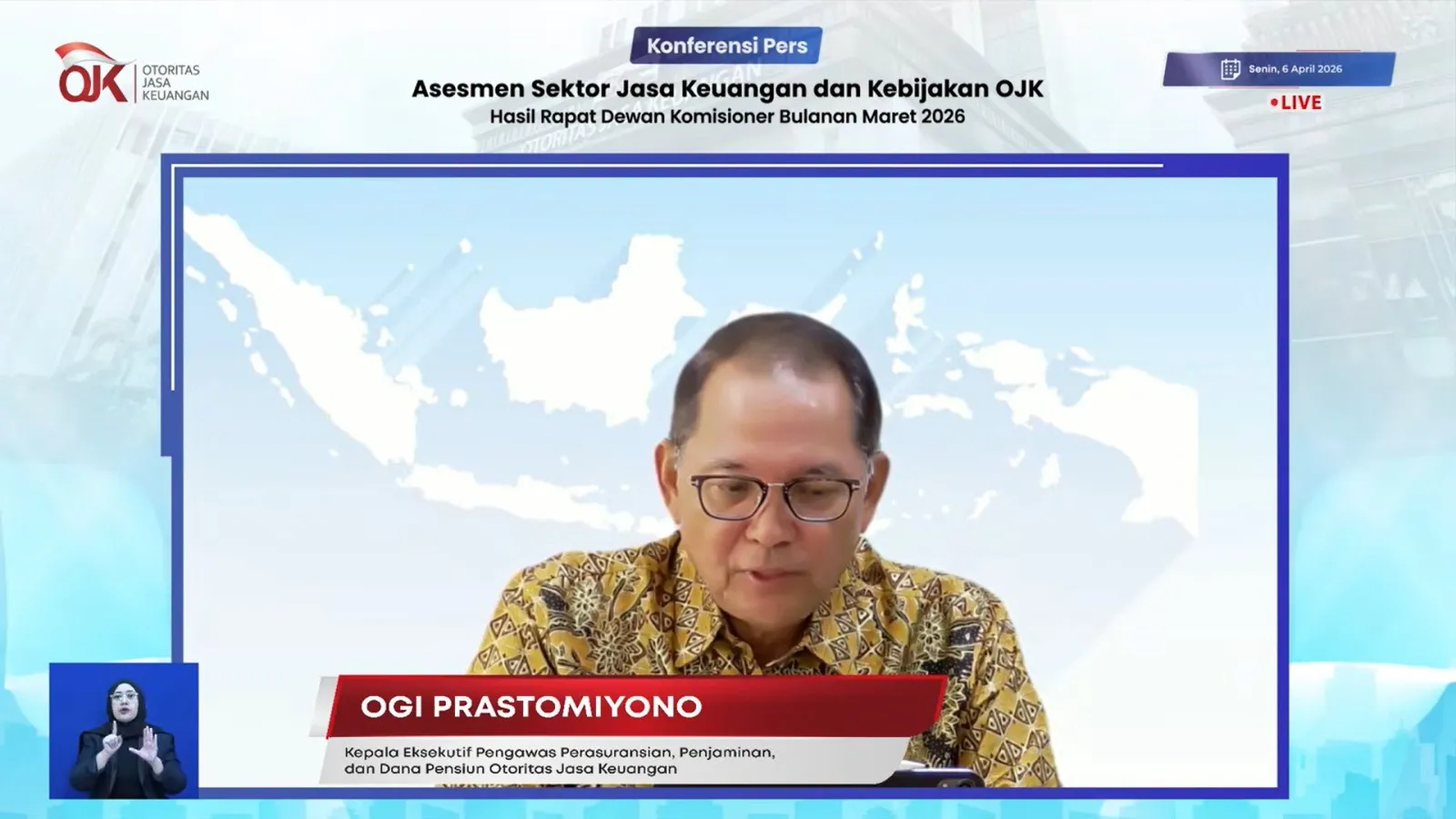 “Adapun kinerja asuransi komersil berupa akumulasi pendapatan premi pada periode Februari 2026 mencapai Rp62,37 triliun, tumbuh sebesar 3,50 persen year on year,” kata Ogi dalam Konferensi Pers RDKB OJK di Jakarta, Senin, 6 April 2026.