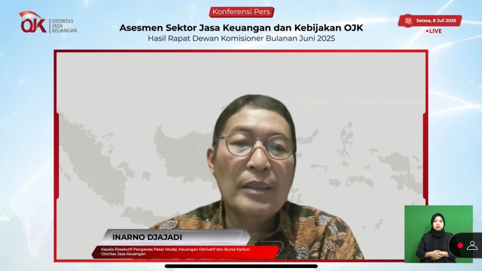 “Di tengah dinamika perdagangan global dan geopolitik pasar saham domestik secara mtd mengalami sedikit pelemahan 3,46 persen di 6.927,68 sedangkan secara ytd melemah sebesar 2,15 persen,” ucap Inarno Djajadi, Eksekutif Pengawas Pasar Modal, Keuangan Derivatif, dan Bursa Karbon OJK dalam RDKB OJK di Jakarta, 8 Juli 2025.