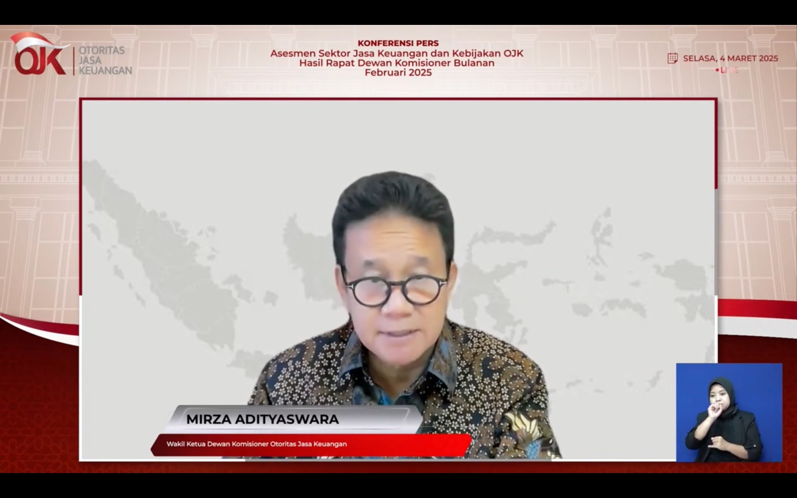 Wakil Ketua Dewan Komisioner OJK, Mirza Adityaswara mengatakan bahwa OJK yang merupakan salah satu lembaga negara, sehingga perlu memperhatikan instruksi yang diberikan oleh Presiden prabowo melalui Inpres 1/2025 terkait efisiensi anggaran.