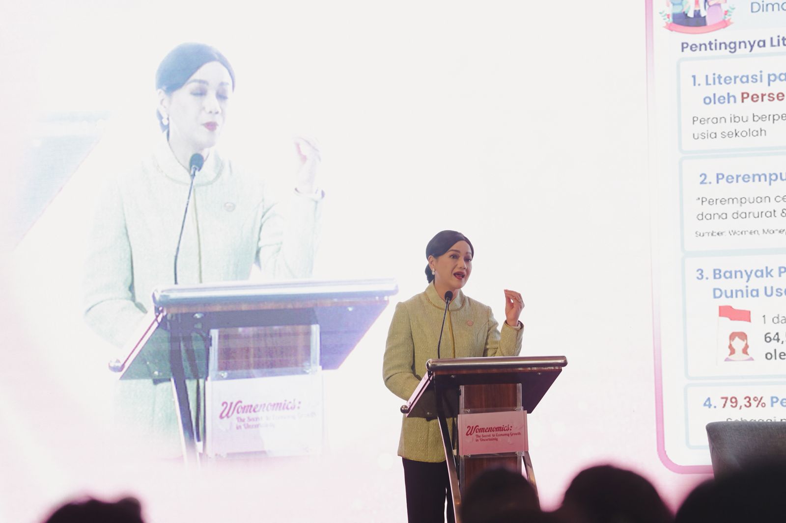 “Kita melihat bagaimana UMKM yang sangat banyak jumlahnya di Indonesia, itu juga sangat banyak dimiliki oleh perempuan di Indonesia. Baik itu perempuan berkeluarga maupun perempuan sebagai kepala rumah tangga (single parent),” ucapnya dalam acara seminar bertajuk “Womenomics: The Secret to Economy Growth in Uncertainty” yang diadakan Infobank Media Group di Hotel Mason Pine, Bandung Barat, Jumat, 4 Juli 2025.