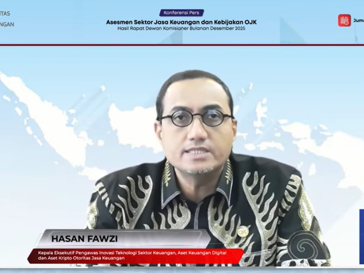 Kepala Eksekutif Pengawas Inovasi Teknologi Sektor Keuangan, Aset Keuangan Digital, dan Aset Kripto OJK, Hasan Fawzi dalam konferensi pers hasil Rapat Dewan Komisioner (RDK) Bulanan secara virtual, Jumat, (9/1/2026). (Tangkapan layar YouTube Otoritas Jasa Keuangan: Julian)
