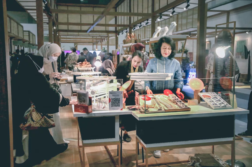 Beberapa pengunjung mengamati kerajinan Mutiara pada Pameran Karya Kreatif Indonesia (KKI) 2023 di Jakarta Convention Center (JCC) Senayan.