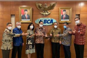Presiden Komisaris BCA Djohan Emir Setijoso (ketiga kanan), Presiden Direktur BCA Jahja Setiaatmadja (tengah), Wakil Presiden Direktur BCA Gregory Hendra Lembong (kanan), Direktur BCA Subur Tan (kedua kanan), Direktur BCA Rudy Susanto (kedua kiri), Direktur BCA Santoso (kiri) dan Direktur BCA Vera Eve Lim (ketiga kiri) di tengah Paparan Kinerja Keuangan BCA Semester I-2022 di Jakarta, Rabu, 27 Juli 2022. BCA dan entitas anak membukukan peningkatan total kredit sebesar 13,8% secara tahunan (YoY) per Juni 2022, didukung oleh kenaikan berbagai aktivitas bisnis sejalan dengan pelonggaran pembatasan mobilitas. Di sisi profitabilitas, BCA dan entitas anak membukukan laba bersih sebesar Rp18,0 triliun di semester I-2022, atau tumbuh 24,9% YoY.