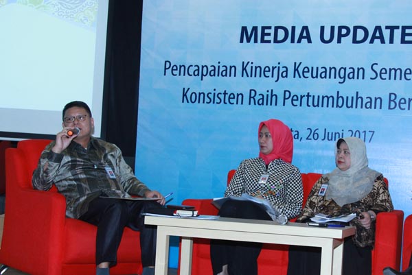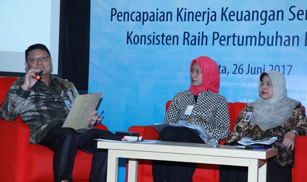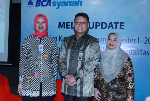 Presiden Direktur BCA Syariah John Kosasih (tengah) bersama Direktur BCA Syariah Houda Muljanti (kiri) dan Direktur Kepatuhan Tantri Indrawati (kanan) berbincang usai memberikan laporan terbaru kinerja keuangan I/2017 BCA Syariah di Jakarta, Rabu 26 Juli 2017. Sepanjang semester I tahun 2017 BCA Syariah mencatatkan kinerja keuangan yang positif. total aset perseroan mencapai Rp5,43 triliun atau naik 25,02% secara year on year dibandingkan Juni 2016.(Erman Subekti)
