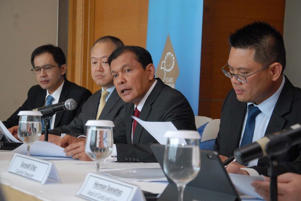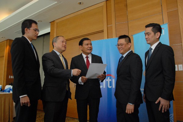 CEO Citi Indonesia Batara Sianturi (tengah), Country Controller Pranadi Wangsa (paling kiri), Chief Financial Officer Warren Huang (kedua dari kiri), Country Treasurer Suryadi Ong (kedua dari kanan) dan Head of Cards and Loans Herman Soesetyo (paling kanan) pada sesi paparan kinerja keuangan Citibank N.A., Indonesia periode semester 1 2019. Citibank N.A., Indonesia (Citibank) berhasil membukukan laba bersih Rp 1,6 triliun pada Semester 1-2019, didukung oleh kenaikan pertumbuhan pendapatan bunga bersih sebesar 8%. (*)