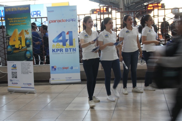 Menyambut HUT ke-41 KPR (kredit pemilikan rumah) PT Bank Tabungan Negara (Persero) Tbk akan menggelar parade KPR sebagai apresiasi kepada seluruh masyarakat Indonesia yang setia memanfaatkan KPR BTN. Berbagai kegiatan promosi dengan penawaran dan gimmick yang menarik akan ditawarkan kepada masyarakat termasuk suku bunga KPR berbunga rendah 4,1%. Di beberapa stasiun kereta api, mal, kantor mitra BTN dan perumahan akan menjadi lokasi BTN dalam menggelar parade KPR tersebut tang ditargetkan bakal menambah kredit baru sekitar Rp3 Triliun sampai dengan akhir Desember 2017. Direksi Bank BTN Nixon LP Napitupulu, Adi Setianto, R Mahelan Prabantariksa dan Budi Satria meninjau both KPR yang disiapkan BTN di stasiun kereta api Jakarta Kota, Senin (4/11). (*)
