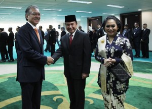 Ketua Mahkamah Agung (MA), Hatta Ali resmi melantik Mirza Adityaswara sebagai salah satu anggota Dewan Komisioner Otoritas Jasa Keuangan (OJK) Ex-Officio Bank Indonesia (BI), di Jakarta, Kamis 20 Agustus 2015. Mirza Adityaswara menggantikan posisi Halim Alamsyah yang saat ini sudah masuk usia pensiun. Dengan diambilnya sumpah jabatan tersebut, maka Mirza Adityaswara akan merangkap dua jabatan sekaligus, dimana saat ini Mirza juga menjabat sebagai Deputi Gubernur Senior BI. (Erman Subketi).