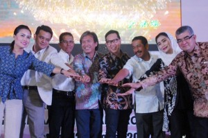 Direktur Consumer Banking BTN Handayani bersama Direktur BPJS Ketenagakerjaan Amran Nasution (kanan), Direktur Utama Lion Group Edward Sirait (kedua kanan) dan Direktur Utama Sarana Global Utama Yuyu Yuhanah (kiri) melakukan peletakan batu pertama pembangunan perumahan pekerja Lion Residence, di Batam, Kamis (12/10).