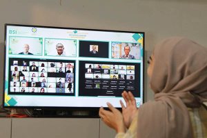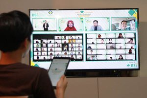Direktorat Jenderal (Dirjen) Dikti Kementerian Pendidikan, Kebudayaan, Riset, dan Teknologi (Kemendibudristek), Nizam (kiri, tampak di layar monitor) dan Wakil Direktur Utama 1 BSI, Ngatari (kanan layar monitor) ketika mengisi acara dalam peluncuran BSI Scholarship yang dilakukan secara virtual, di Jakarta, Kamis 2 Desember 2021. BSI Scholarship adalah wujud kepedulian Bank Syariah Indonesia dalam penguatan kualitas pendidikan generasi milenial di Tanah Air. Meski baru secara resmi diluncurkan, sebanyak 4.418 mahasiswa sudah mendaftar untuk mengikuti BSI Scholarship. Namun hanya 463 mahasiswa yang terpilih sebagai awardee. Para mahasiswa yang terpilih berasal dari 38 universitas ternama di Indonesia.